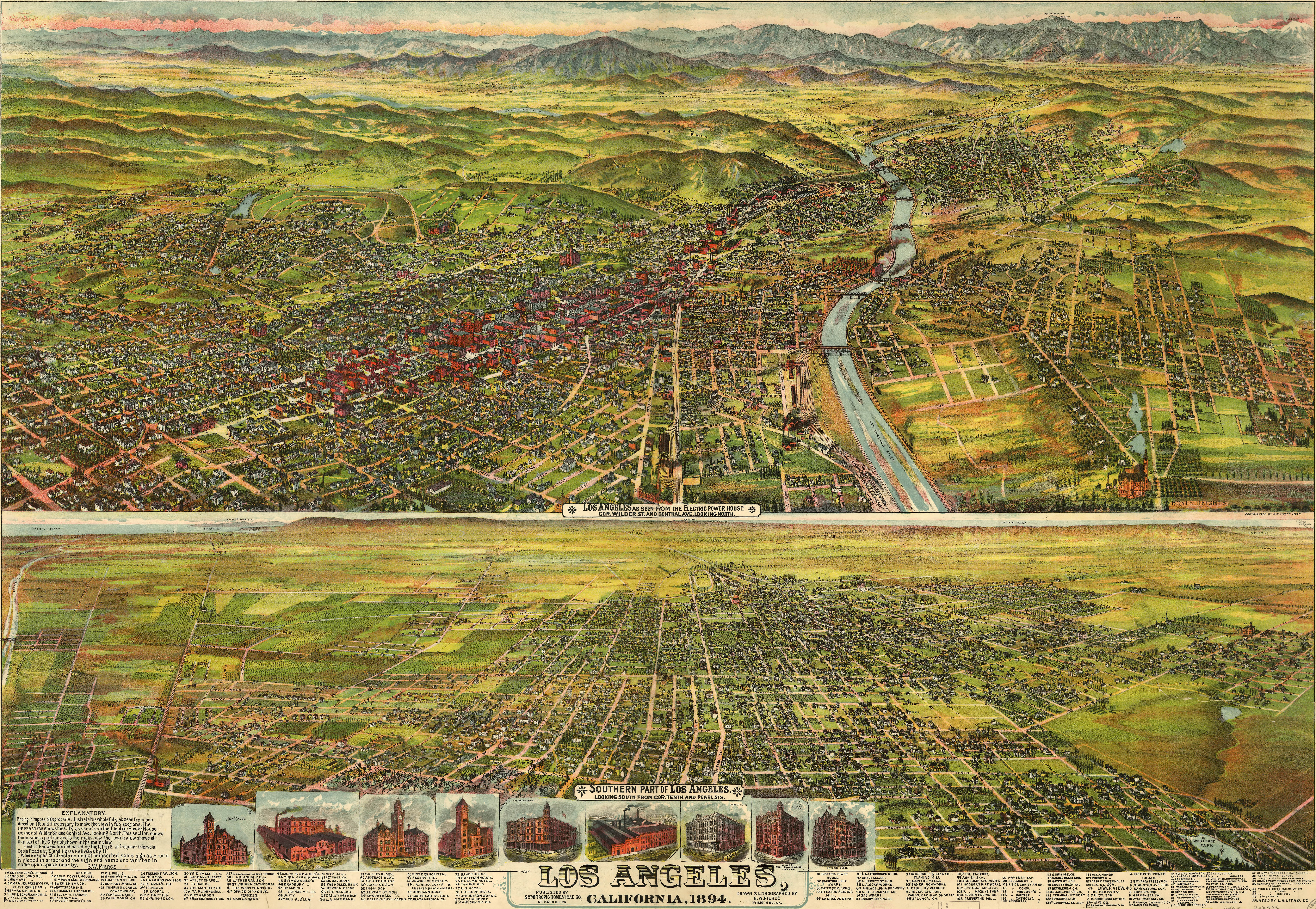 Oh, wow, here's a nice huge-ass version of Pierce's map of Los Angeles 1894. It's actually two pseudo-aerial views, one north, one south.